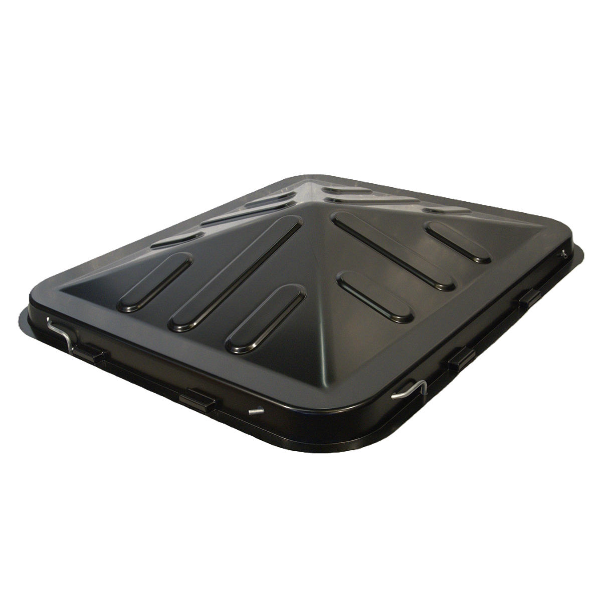 Der umlaufende Überstand von 7 cm schützt den Inhalt vor herablaufenen Wasser. Die Dachform optimiert die Duchlüftung im gegensatz zu einer Planenabdeckung.