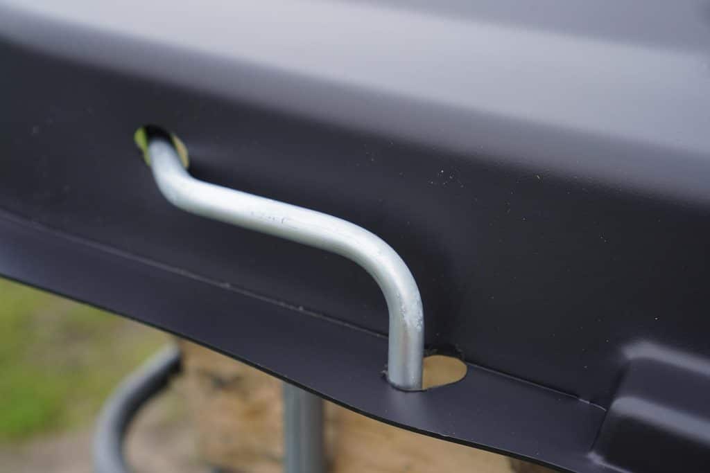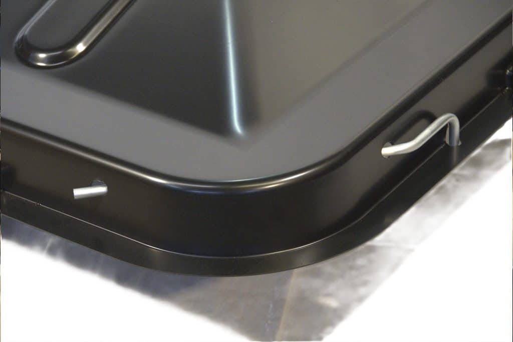 Mit dennen im Set entghaltenen Sicherungssplinten lassen seich die Verreigelungen zusätzlich gegen ein heraus drehen sichern. So bietet diese Verreigelung zusätzlich Schutz bei Starkwind und ist damit die sicherste Lösung um die Abdeckung auf eine Gitterbox zu montieren.